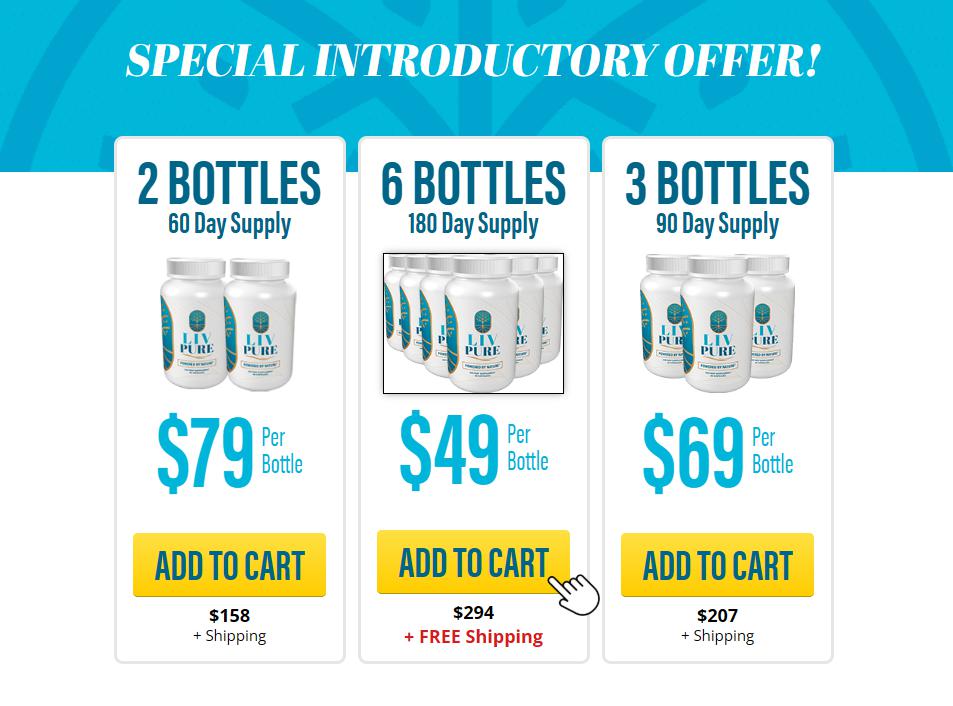 The Livpure supplement is available directly from the Livpure official website in three package options: