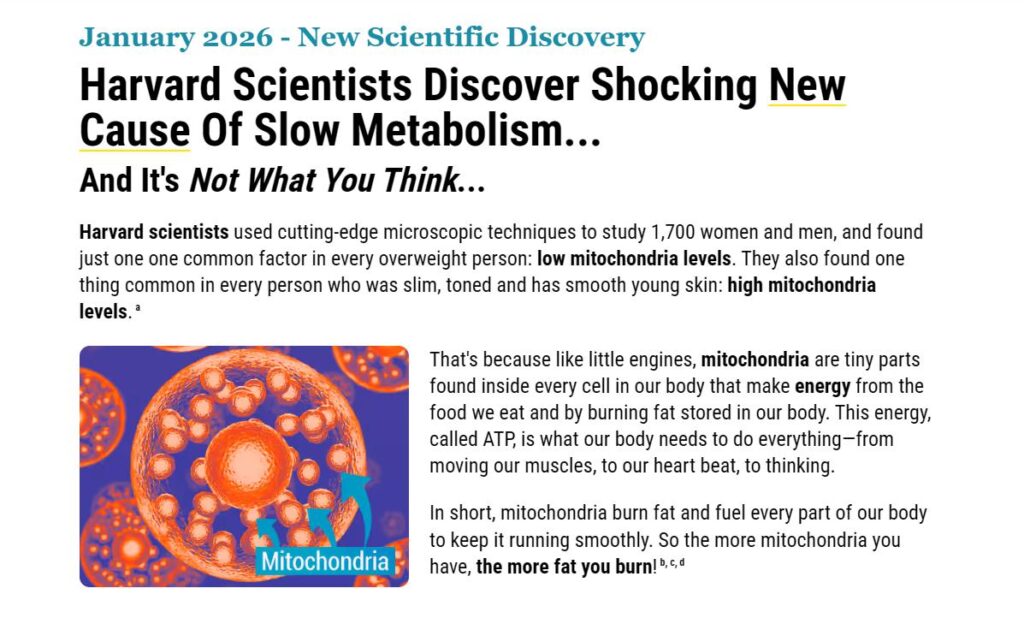Scientific Foundation: The Harvard research on mitochondria and weight loss is real and published in peer-reviewed journals.
